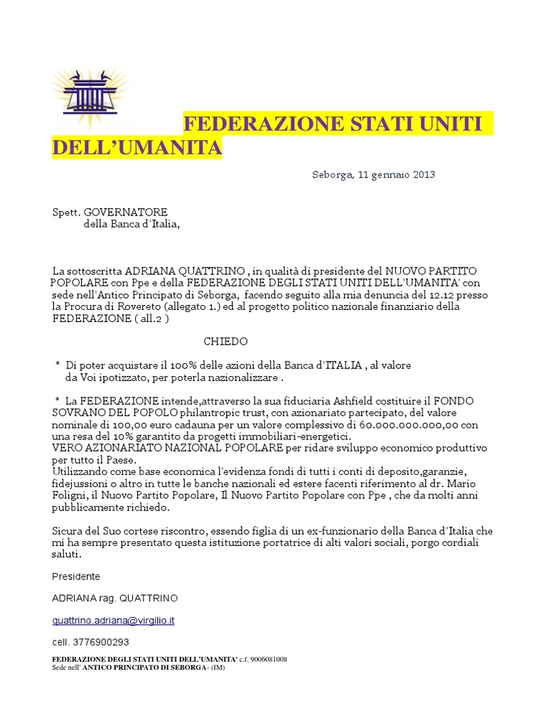 Il cliente, le associazioni che lo rappresentano e le altre parti interessate possono presentare esposti alla banca d'italia, impregiudicato il loro diritto di. Salvatore rossi il consiglio direttivo del comitato inquilini. Banca d'italia è la sezione del portale che riporta le informazioni relative agli accordi nati dalla collaborazione tra noipa a la banca d'italia che hanno contribuito a migliorare i servizi erogati da noipa gli accordi esistenti tra noipa e banca d'italia hanno consentito, nello specifico, la nascita di La richiesta della centrale dei rischi va inoltrata ad una delle filiali banca d'italia che svolgono servizi al pubblico. A seguito della predetta richiesta la banca si riserva la facoltà di accettare ovvero di recedere.